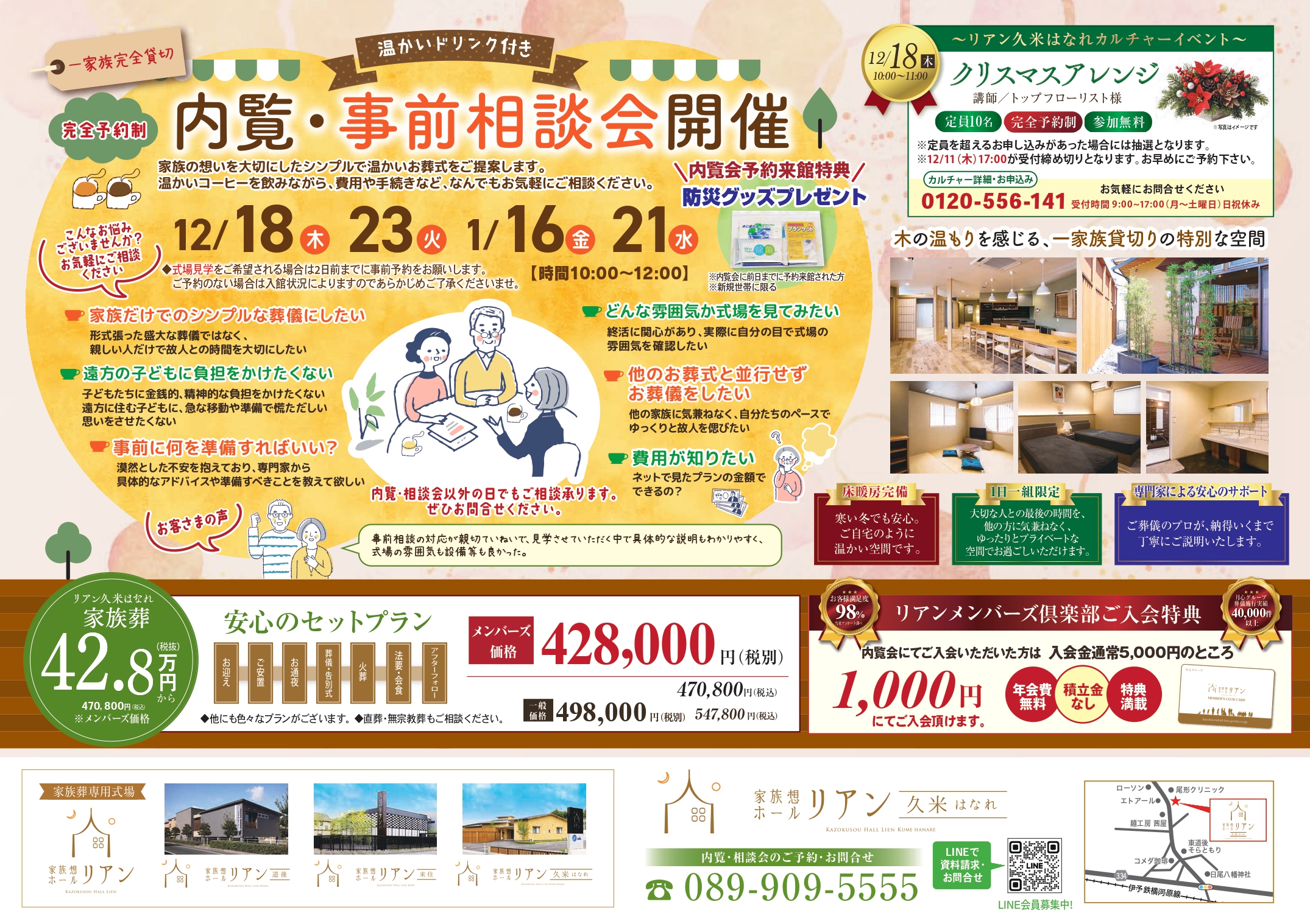家族想ホールリアン久米はなれでは、2025年12月、2026年1月で内覧会・事前相談会を開催いたします。